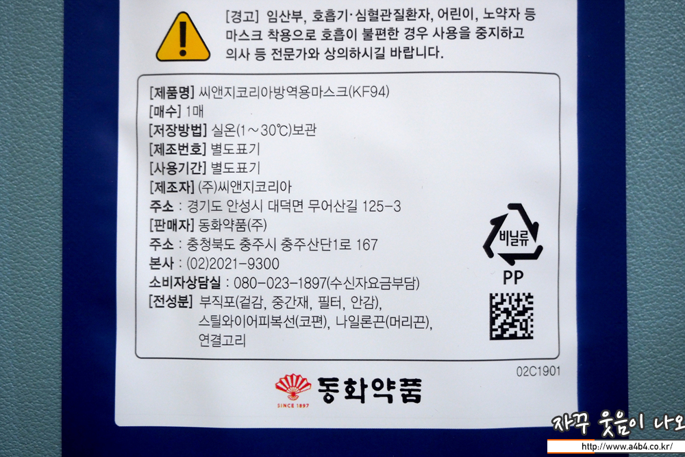 동화약품 마스크는 씨앤지코리아 마스크와 동일한 제품입니다.