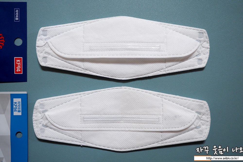 KF94 마스크로 3중 구조인지 4중 구조인지는 확인하지 못했습니다. 브랜드 마스크인데 마스크 정보 확인하기가 너무 어렵네요. 심지어 동화제약 홈페이지에도 등록내용 없습니다. 외피는 드라이한 촉감을 보여주며 조금 두께감은 있습니다.