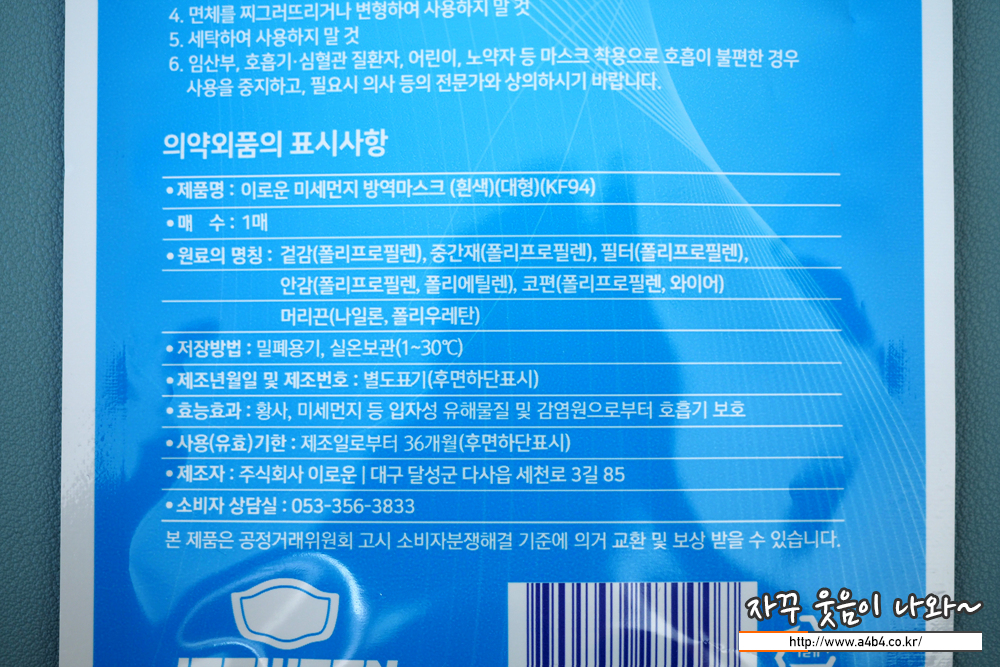 주식회사 이로운에서 생산 판매하는 KF94 이로운마스크 대형 사용기 및 리뷰입니다.