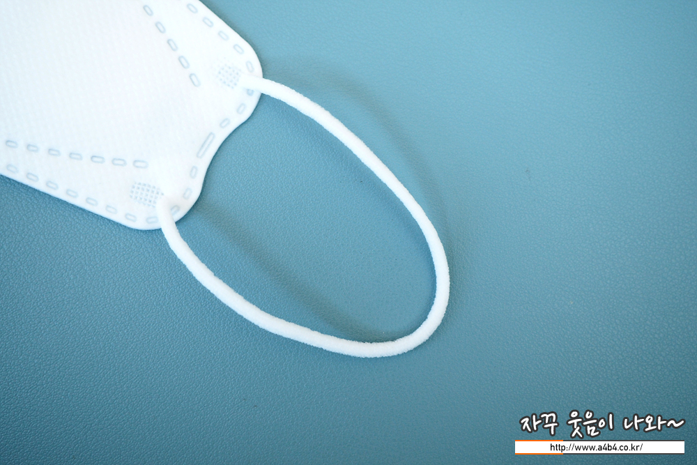 둥근 모양의 귀걸이끈은 마스크 전면에 접착되어있으며, 귀걸이끈 탄성은 조금 강합니다.