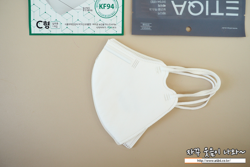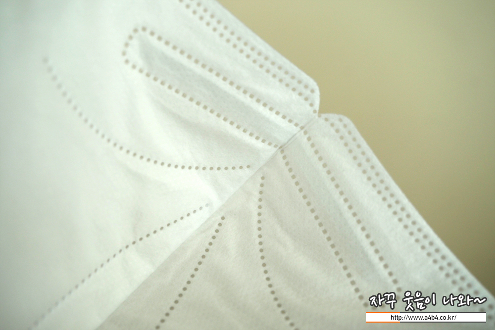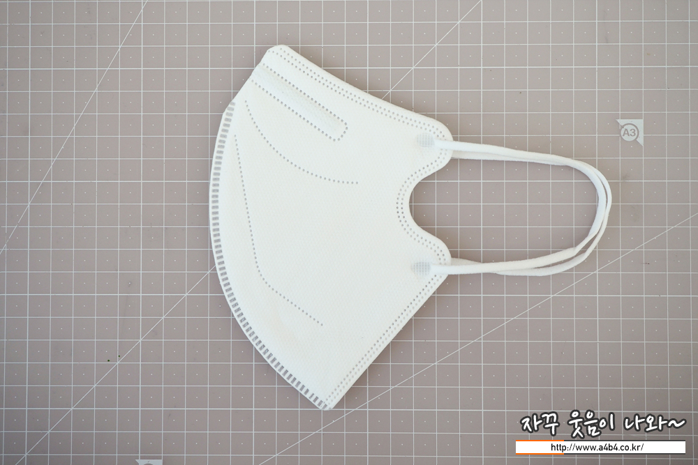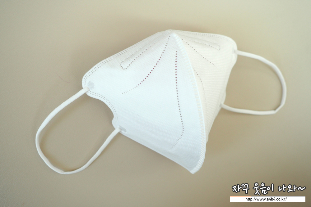 제조사 안내에 따르면 4중 필터방식의 KF94 대형 마스크입니다. 타사의 KF94 마스크와 비교해서 얇은 타입의 제품으로 착용감 또한 소프트한 느낌을 주고 있습니다. 약한 엠보싱 처리된 겉감은 드라이한 촉감을 주고 있습니다.
