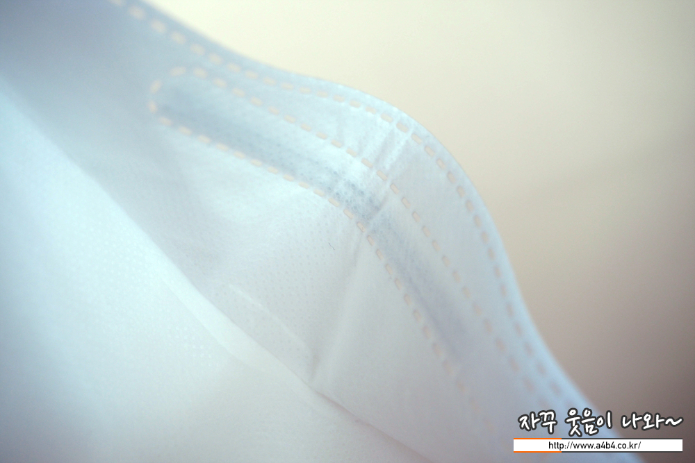 마스크 겉감은 약한 패턴처리된 부직포가 사용 되었으며, 촉감은 드라이한 타입으로 하드함과 소프트한 타입의 중간정도 착용감을 느낄 수 있습니다. 전반적으로 무난...
