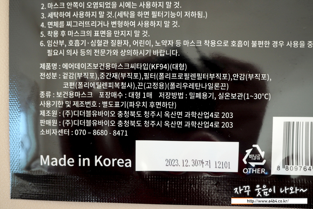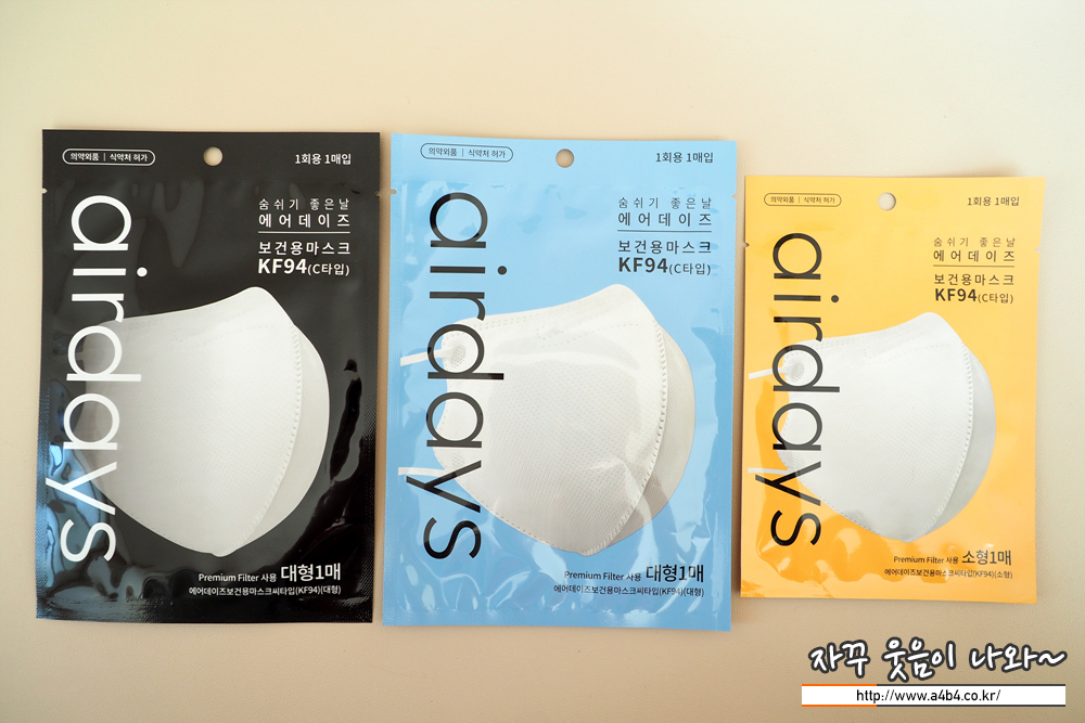 다만, 두 제품 패키지에는 동일하게 '에어데이즈 보건용마스크씨타입 대형'으로 표시되어 있습니다. 조금 이상한 부분이기는 합니다. 저도 처음에 제품을 배송받고 잘 못 배송된 것이 아닌가 했었네요.
