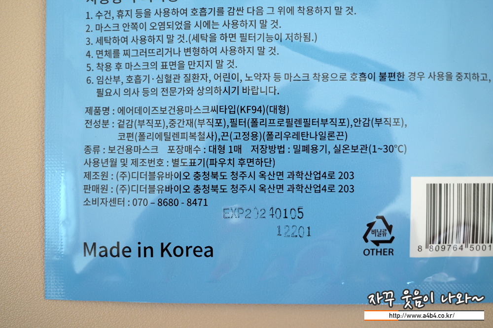▲▲▲ 여기까지는 KF94 새부리형 에어데이즈 마스크의 공통적인 부분입니다.