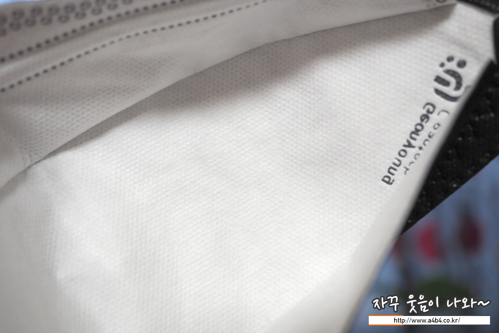마스크 안감 또한 약한 패턴처리된 매끈한 감촉의 부직포가 사용되었습니다. 제가 좋아하는 타입의 안감입니다.