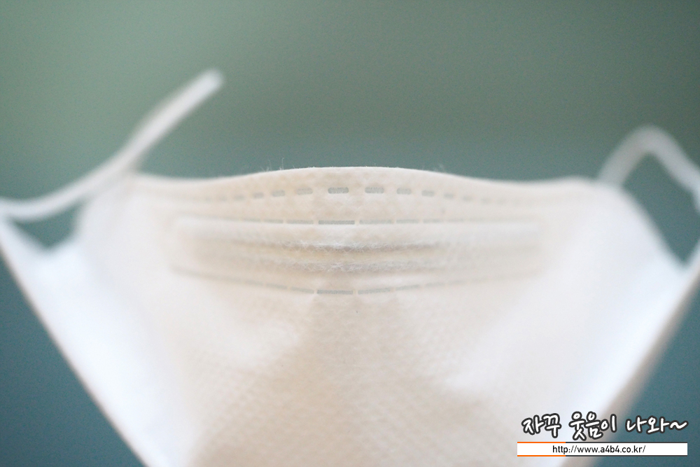 마스크 겉감은 약한 패턴처리리된 부직포로 감촉은 드라이한 느낌입니다. Kf94 타입중에서는 조금 얇은 두께감을 주는데요. 마스크는 소프트하지 않고 각 잘 잡히는 하드한 착용감을 보여줍니다. 마스크 안에 하드쉘이 잘 들어간 듯...