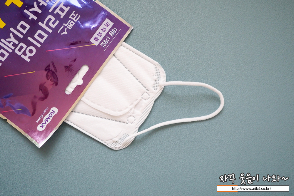 디자인은 일반 삼단접이식 입체형 마스크입니다. 다만 최근의 마스크 디자인이 라운드 처리가 강한 반면 코멕스 프리미엄 황사마스크 디자인은 직각 사각형에 가까운 약간은 둔탁한 디자인을 보이고 있습니다. (그러나 이 부분이 대두에게는 축복이 된다는...)