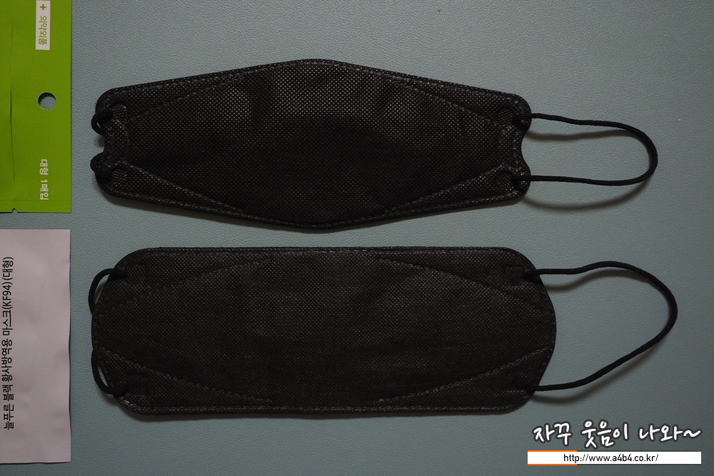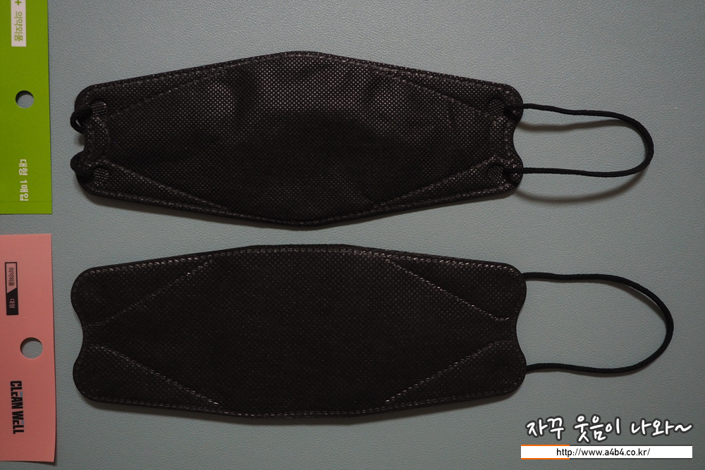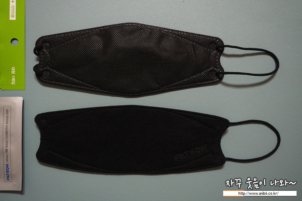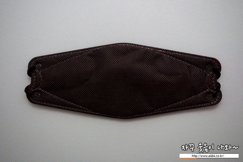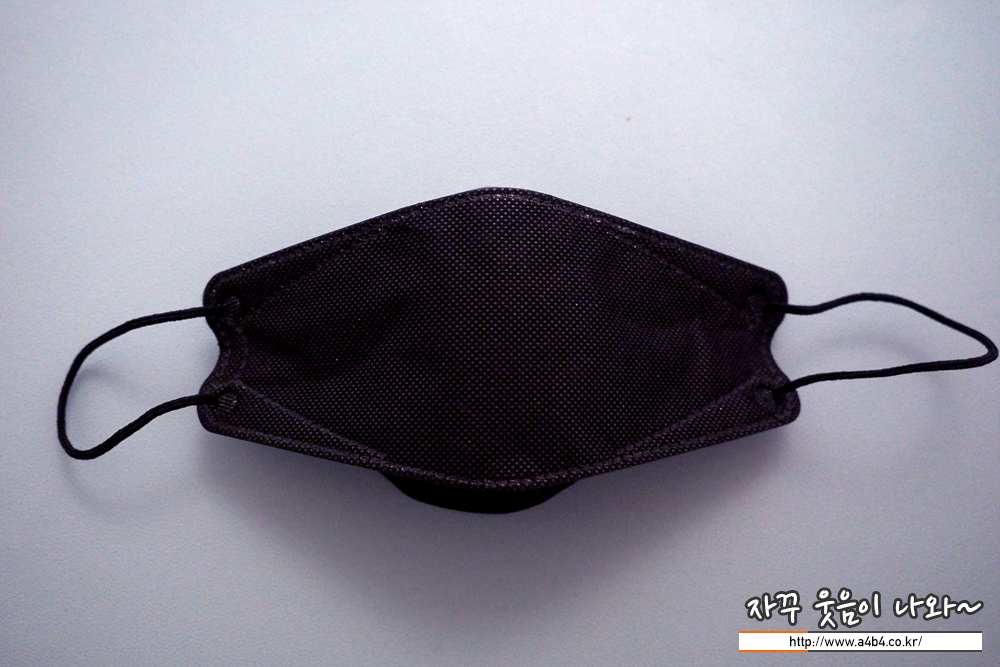 마스크 외피는 엠보싱 처리된 매끄러운 감촉의 부직포 처리가 되어 있습니다. 반유광 블랙으로 염색 처리는 무난하게 발색도 상당히 고급스럽고 양호하게 처리되어 있습니다. 중저가 마스크 중에서는 상대적으로 잘 처리된 블랙 마스크입니다.