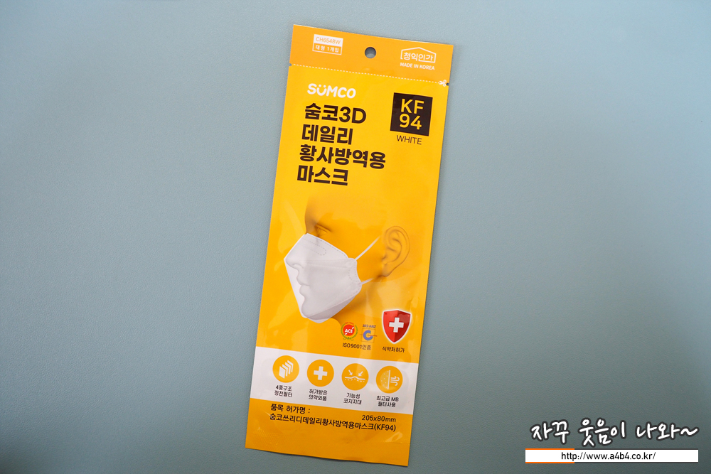 오늘은 노란색 패키지와 대형플러스 얼큰이 마스크로 유명한 숨코 3D마스크 대형 착용감 및 사용후기입니다.