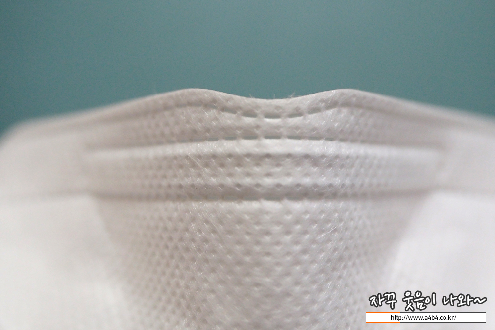 클린온 마스크 대형은 4중 필터구조로 엠보싱 처리된 드라이한 감촉의 부직포가 외피로 사용 되었습니다. 두께는 얇은 편이며, 두께에 비해서 하드한 타입의 제품입니다.