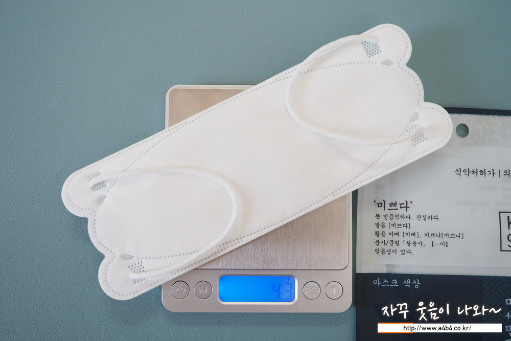 미쁘다 마스크 사이즈는 가로 폭 길이 약 21센티미터, 세로 높이 약 8센티미터로 타사 일반 마스크와 비슷한 크기입니다.
