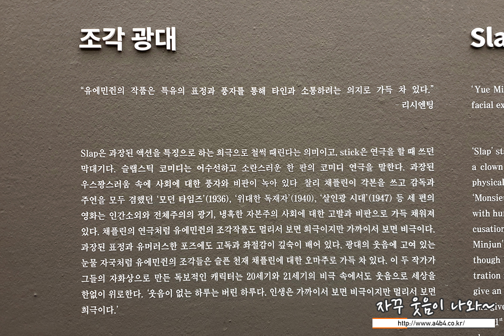 이번 유에민쥔(岳敏君) 한 시대를 웃다! 전시회에서 홍보하는 포인트 중 하나는 작가인 웨민쥔이 중국 4대 현대미술가 라는 부분인다. 이 4명 중에서 회화와 조각을 동시에 소화하는 유일한 작가라고 할까...