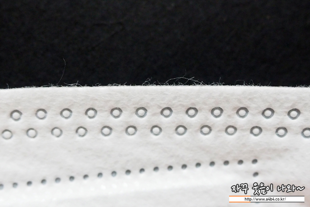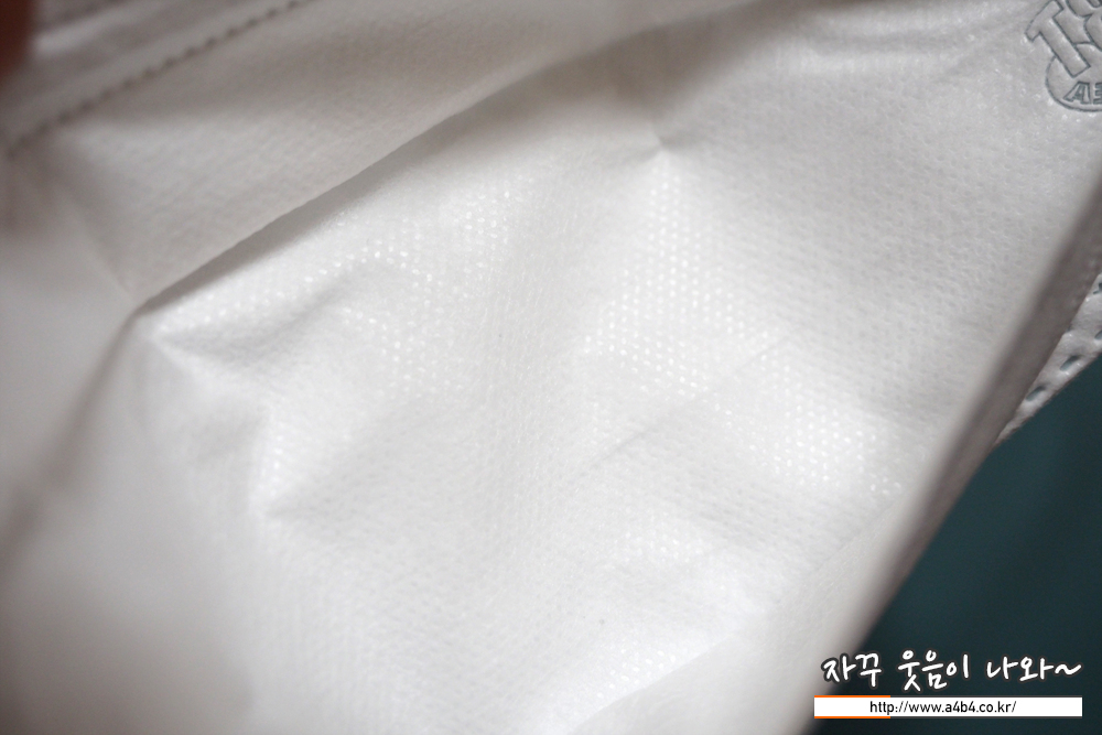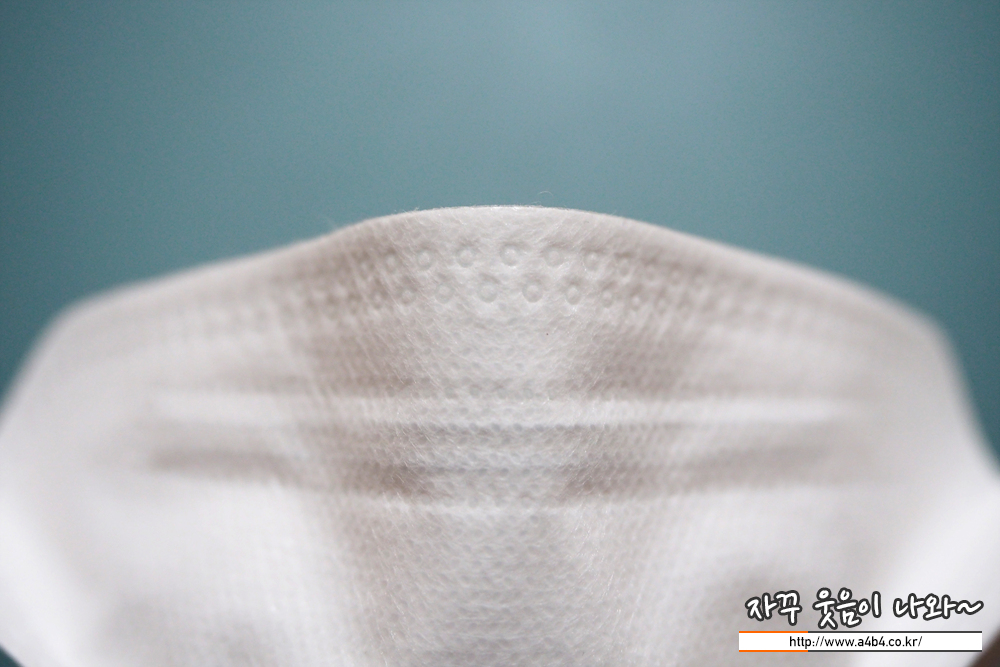 비티 마스크 내피는 드라이한 촉감의 부직포가 내피로 시용되었습니다. 마스크 내피에 보풀은 없지만 마스크 접착면 주변으로 약간의 보푸라기는 보이네요.