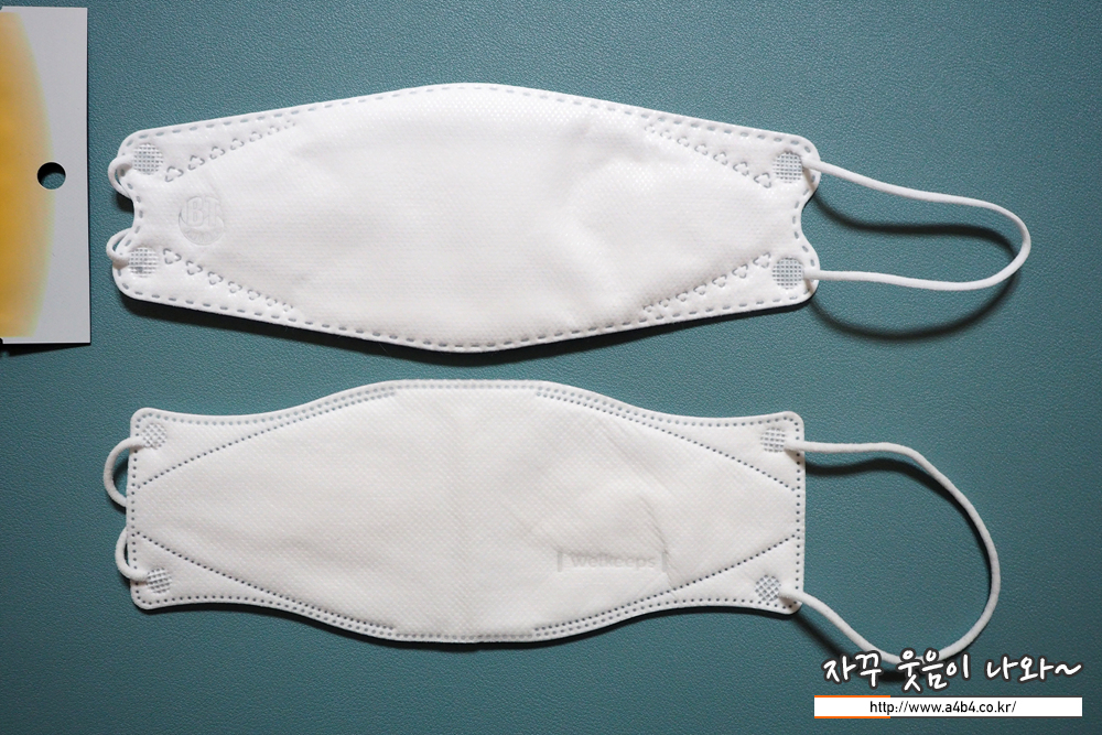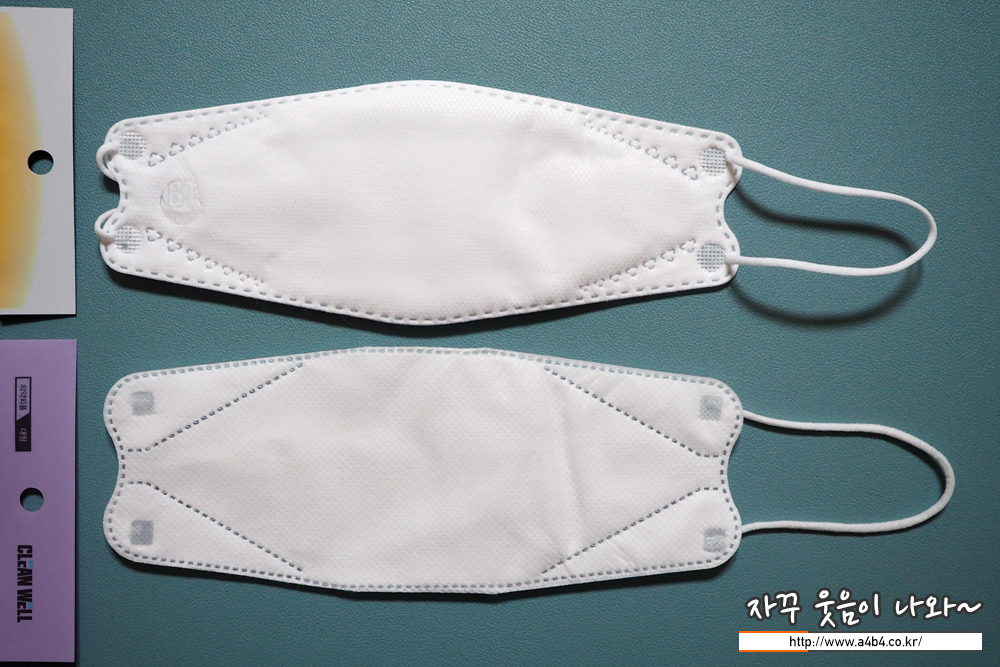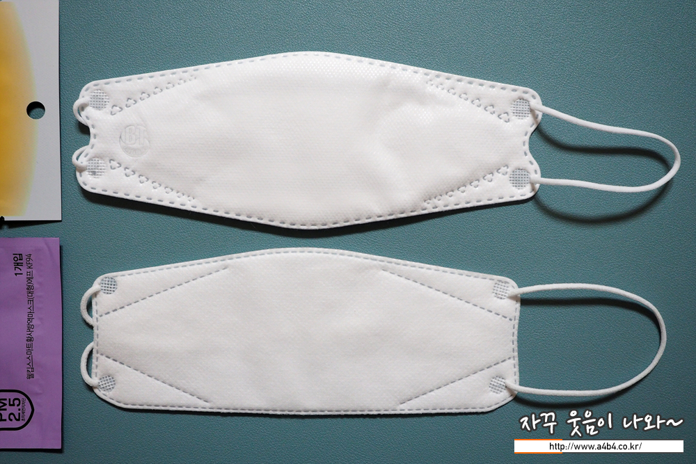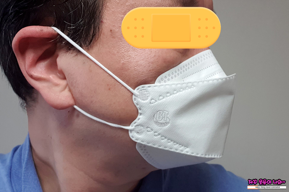 비티 마스크는 소프트한 스타일의 얇은 마스크로 무난한 착용감을 보여줍니다. 다만 얇고 소프트한 타입으로 착용핏이 잘 나오지는 않습니다. (마스크가 조금 우네요...) 그렇다고 착용감이나 마스크 안쪽 공간 확보에 문제가 있지는 않습니다. 전체적으로 무난한 타입의 마스크입니다.