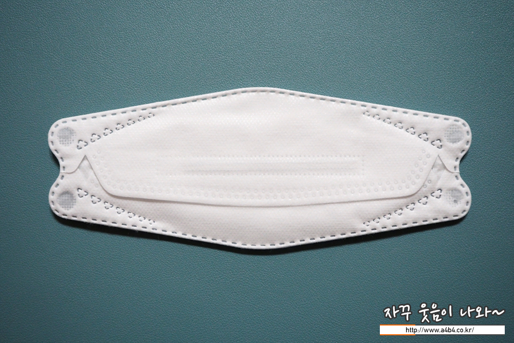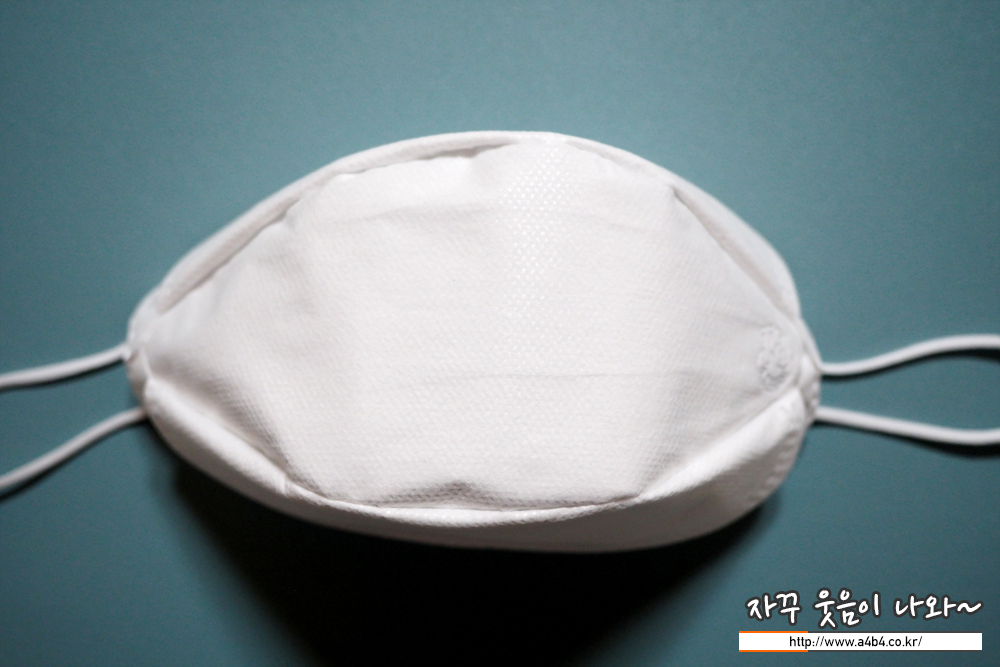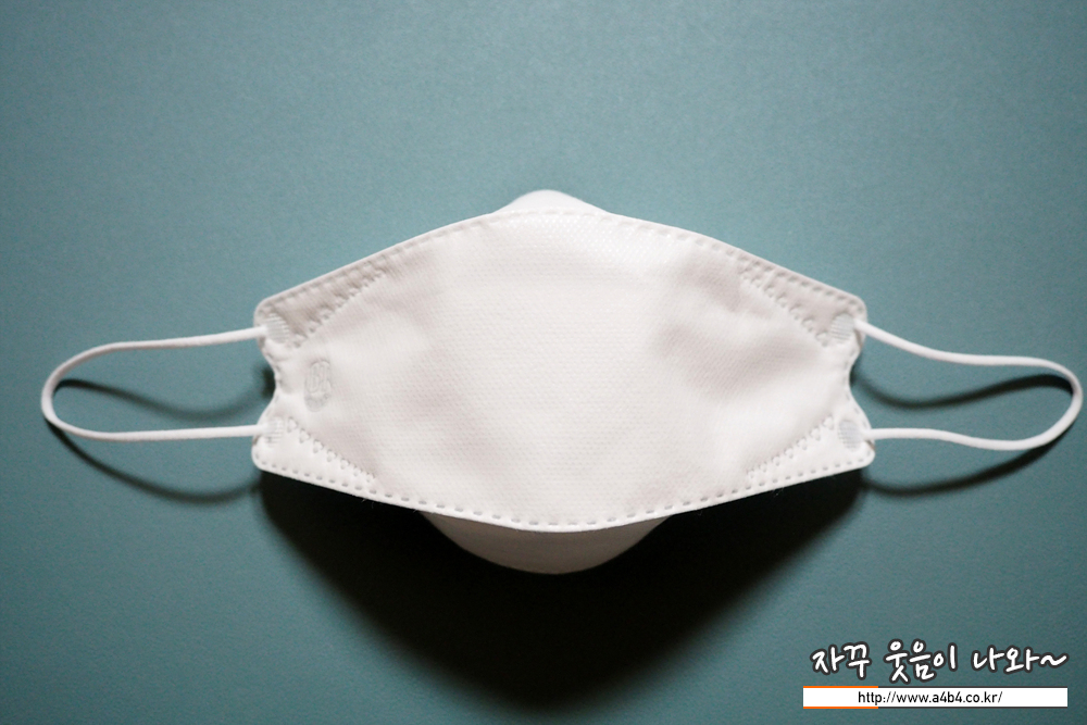 둥근모양의 귀걸이끈은 마스크 전면에 접착되어 있으며, 귀걸이끈 탄력은 조금 짱짱한 편입니다.