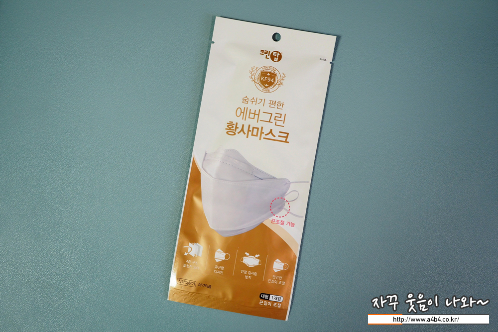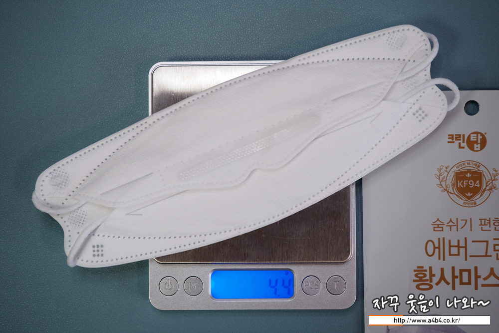 에버그린 끈조절 마스크 대형 중량은 4.4그램으로 KF94 대형사이즈 마스크 중에서는 조금 가볍습니다.