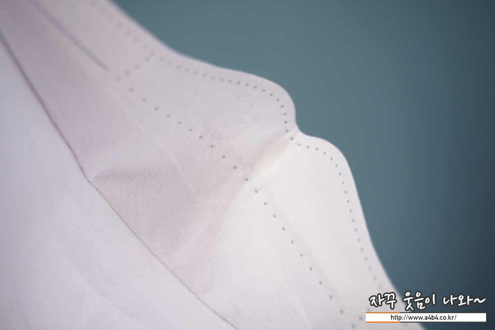 에버그린 황사마스크 대형의 내피는 부드러운 감촉의 부직포가 적용 되었습니다. 마스크 내피에는 아래 사진과 같이 보푸라기가 조금 보이는네, 실 착용해보니 우려되었던 가렵거나 간지러운 피부트러블은 생기지 않았습니다.