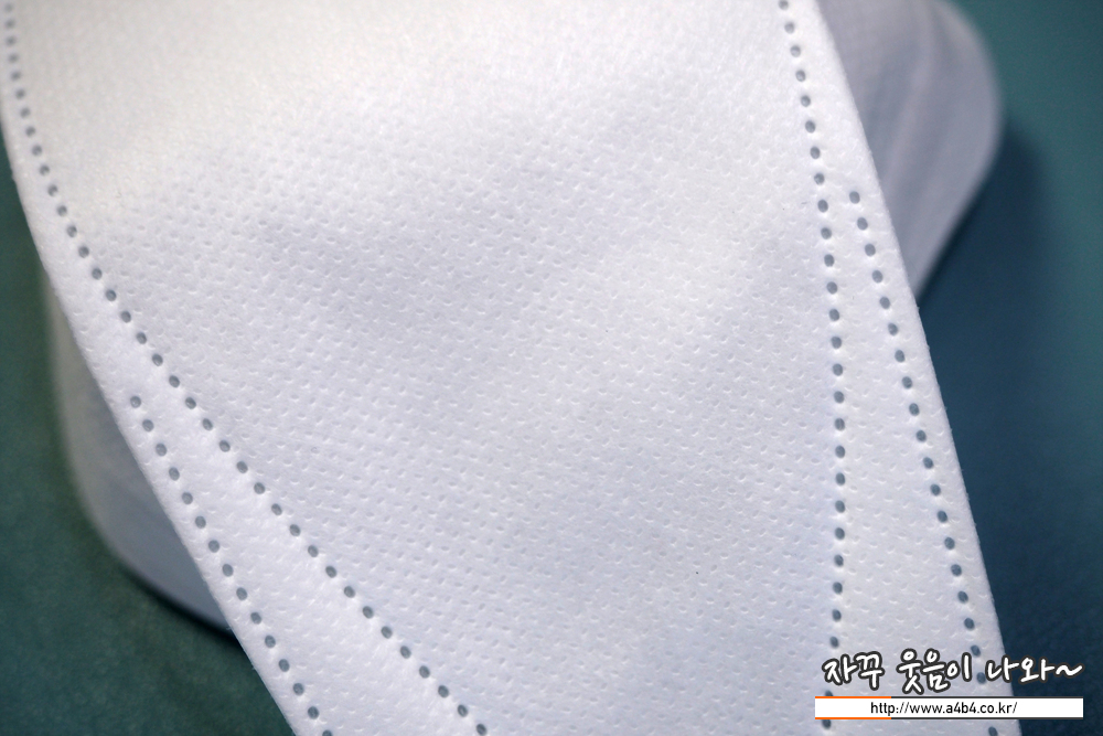 성상 1) 흰색: 흰색의 4겹 부직포로 구성된 마스크로 측면 상하에 탄력성이 있는 머리끈이 있고 코누름쇠로 밀착도를 높일 수 있는 구조로 되어있다. 2) 검정색: 겉면은 검정색의 부직포로 되어있