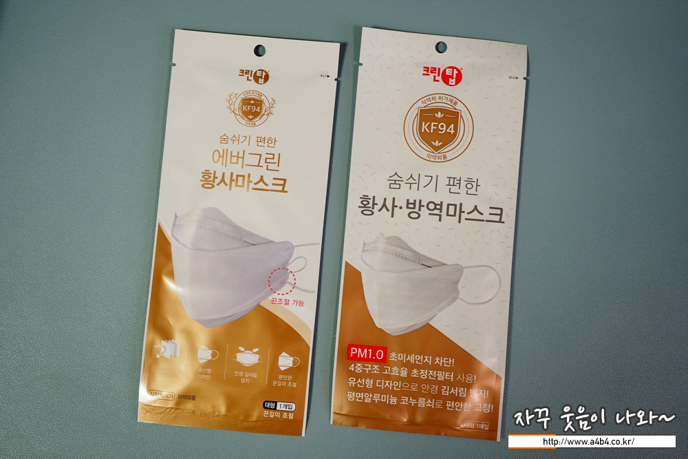 지난 끈조정 기능의 크린탑 에버그린 마스크에 이어 오늘은 끈조절 기능이 없는 일반 입체형 크린탑 마스크 KF94 대형 리뷰입니다.