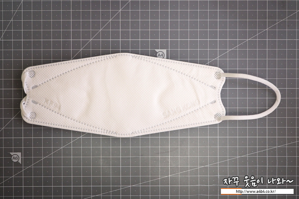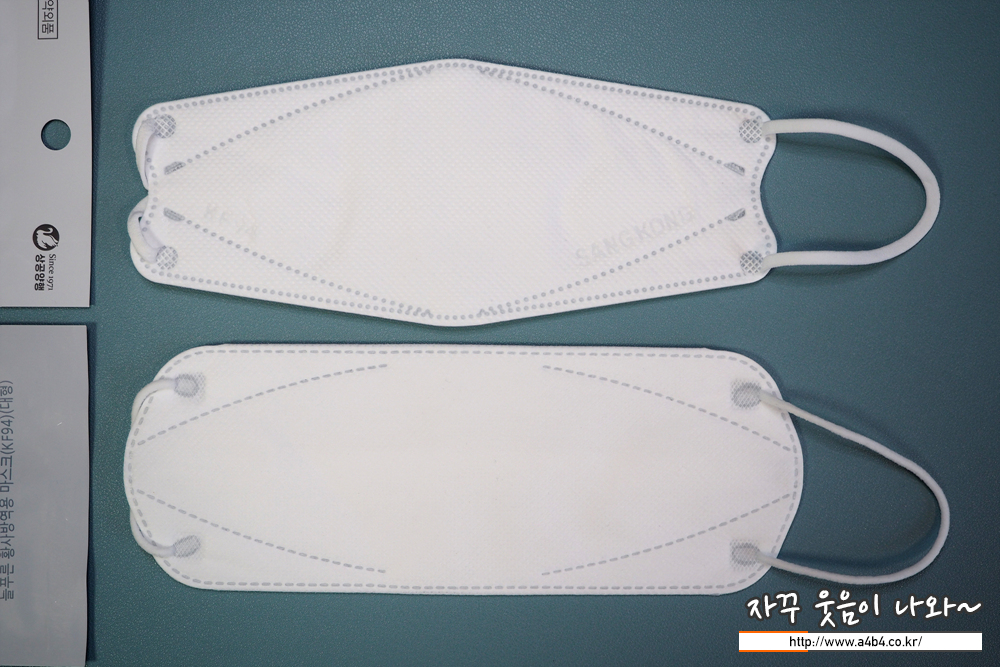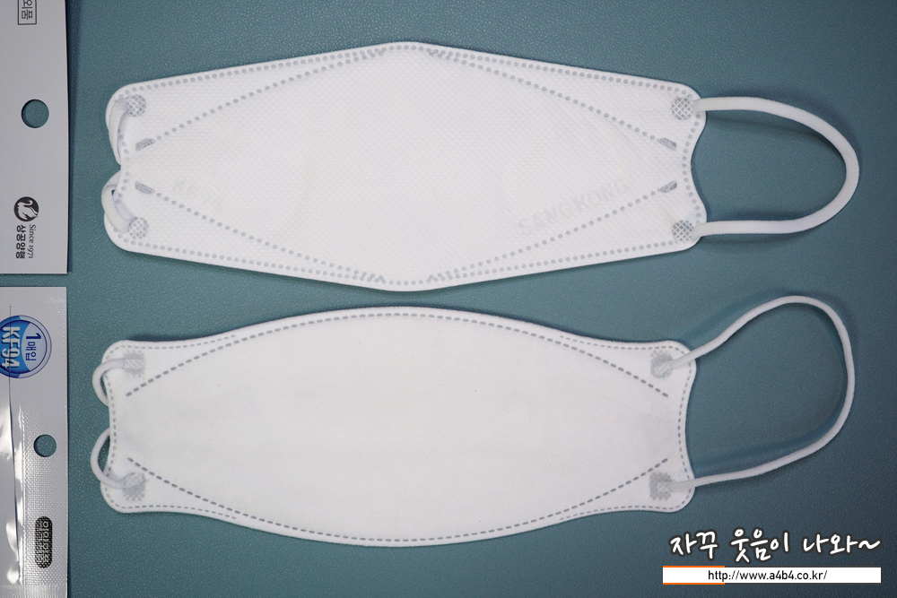 상공양행 마스크 디자인은 가로 삼단접이식 3D스타일 마스크 모양입니다. 참고로 해당 제품은 마스크 금형이 마모되어 금형 교체가 있었다고 합니다. 교체후 접합선이 점에서 - 모양으로 변경 되었다고 합니다. (오늘 리뷰할 마스크는 구형 입니다.)