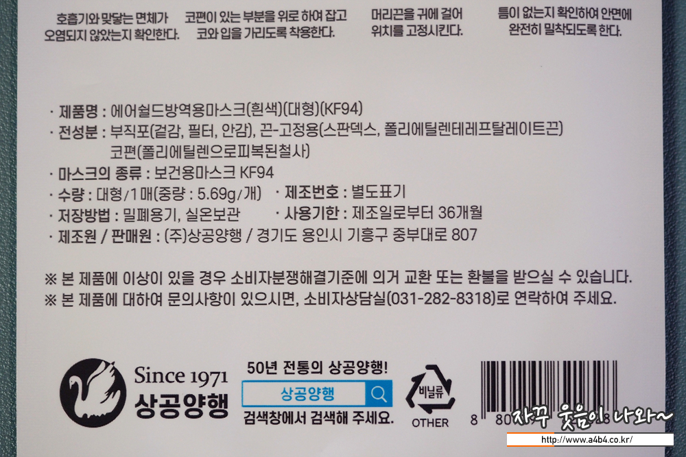 [2/3] 상공양행 에어쉴드 마스크 대형 착용감 및 장단점 후기