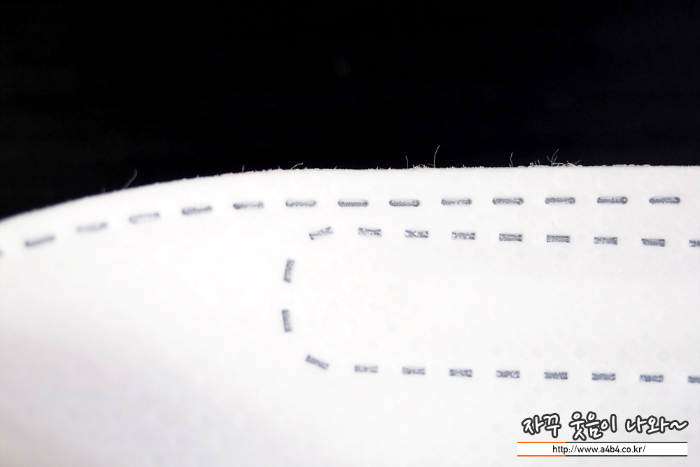 상공양행 마스크 에어쉴드 안감은 조금 드라이한 감촉의 부직포가 적용된 제품입니다. 내피와 접합면 주위로 약간의 보푸라기를 불 수 있는데요. 그렇다고 심하게 얼굴이 간지럽거나 가려운 문제는 없습니다. 또한 개봉후 바로 착용하면 약간의 약품냄새도... 심한 정도는 아니니 민감하신 분들만 참고하세요. (기본은 좋은 제품입니다.)