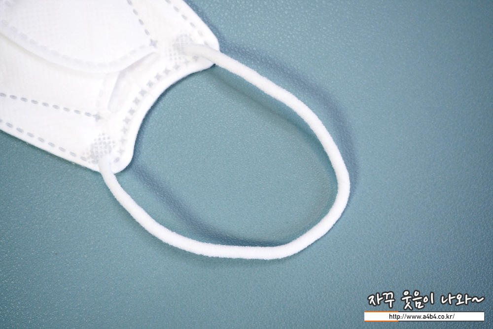 둥근 모양의 이어밴드가 마스크 뒷면에 접착되어 있습니다. 접착 상태는 무난하며, 탄력은 일반적인 타입입니다.