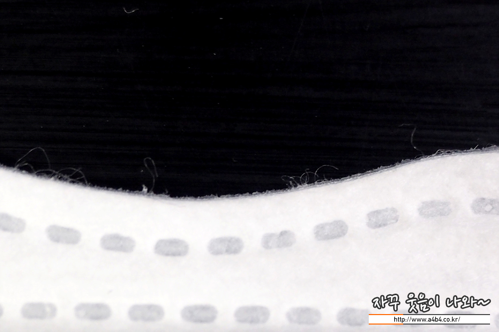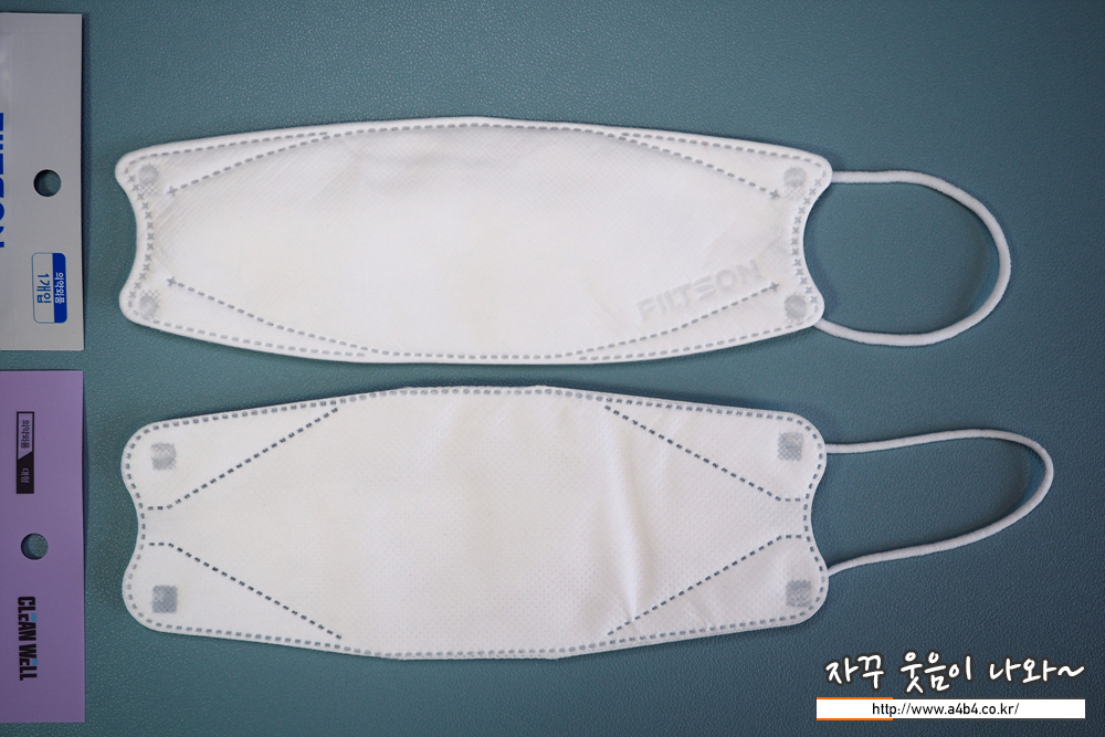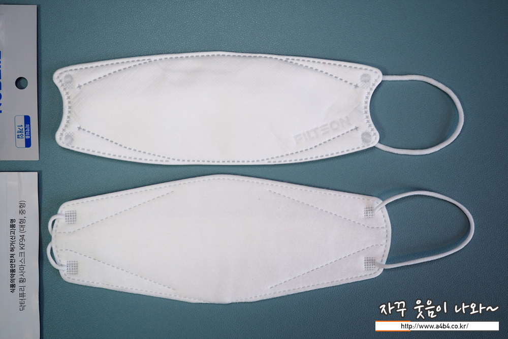오늘 리뷰하는 필슨엠 산들 마스크 KF94 내피는 부드러운 감촉의 부직포가 사용 되었습니다. 부직포에 약품냄새나 문제는 없어 보이지만, 마스크 안쪽과 테두리 주변으로 보푸라기가 보이네요. 저는 하루종일 사용해도 간지럽거나 가려운 피부 트러블은 없었습니다만, 개인차가 있을 것으로 판단됩니다. 또한, 마스크 원산지는 파악하지 못했습니다.