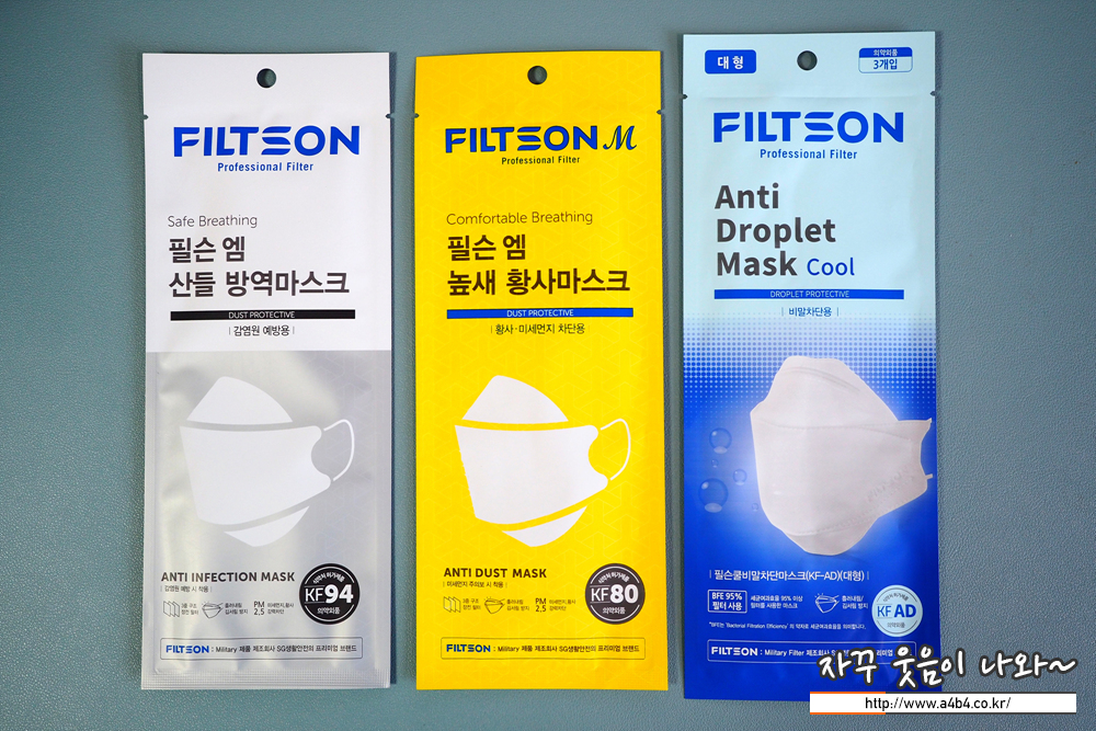 필슨엠에서 생산하는 KF94 (산들) / KF80 (높새) / KF-AD 제품비교