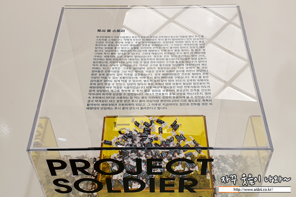 그리고 참전용사에게 전달하는 패키지 샘플이 전시되어 있다.