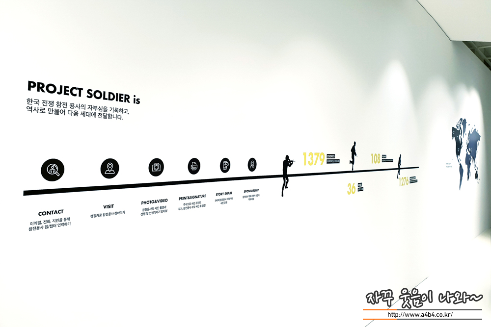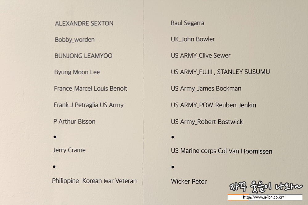 참전용사의 사진과 함께 그의 스토리가 함께 전시되는 공간...