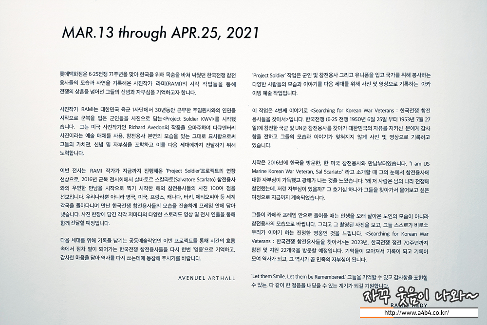 다음달 25일까지 열리는 '<PROJECT SOLDIER, RAMI HYUN> 전시회의 개요 및 내용