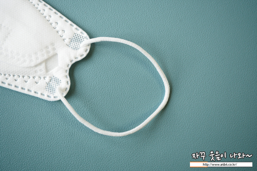 원형의 귀걸이끈은 마스크 후면에 부착되어 있으며, 서울마스크 귀걸이끈 탄성은 잘 늘어나는 조금 약한 타입입니다.