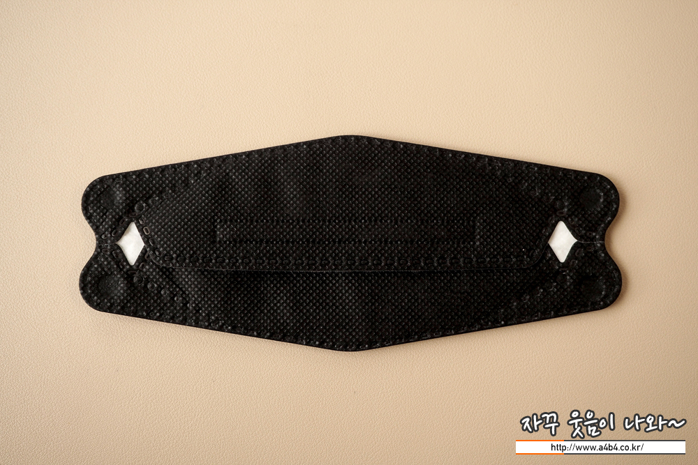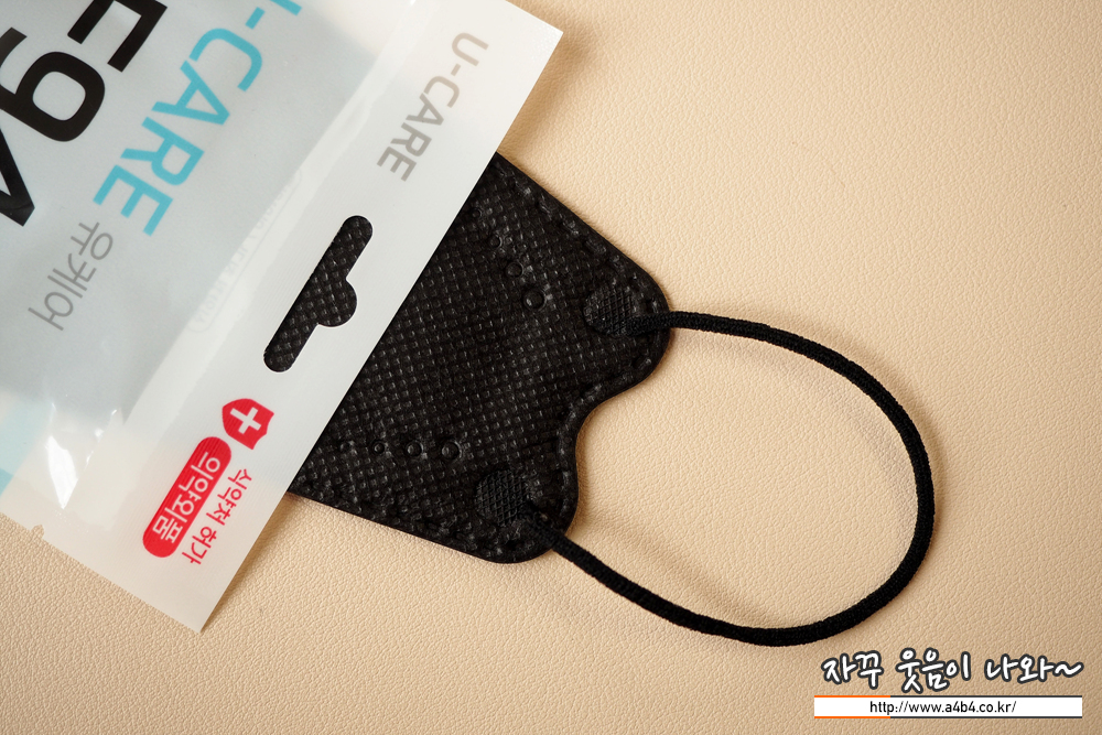 KF94 유케어 블랙 마스크는 도트 처리된 드라이한 감촉의 블랙색상 부직포가 사용되었습니다. 마스크 발색은 반유광 블랙으로 염색상태나 심도는 무난한 수준입니다. 마스크 두께는 일반적인 수준이며 조금 소프트한 착용감을 주는 제품입니다.