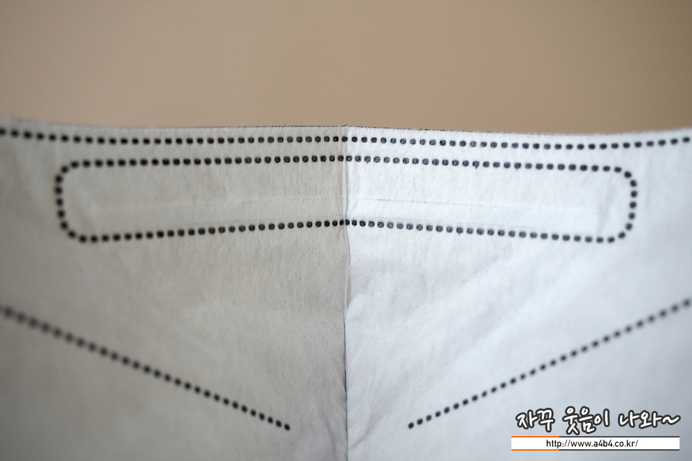 마스크 겉감은 드라이한 촉감을 보이여 약한 패턴처리되어 있습니다. 감촉은 조금 매끄러운 편이며 얇은 타입의 마스크입니다. 두께에 비해서는 상대적으로 하드한 착용감을 보입니다.
