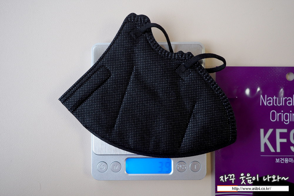 KF94 찐마스크 블랙 대형 무게는 3.9그램으로 타사의 블랙 새부리형 마스크에 비해 조금 가벼운 무게를 보입니다.