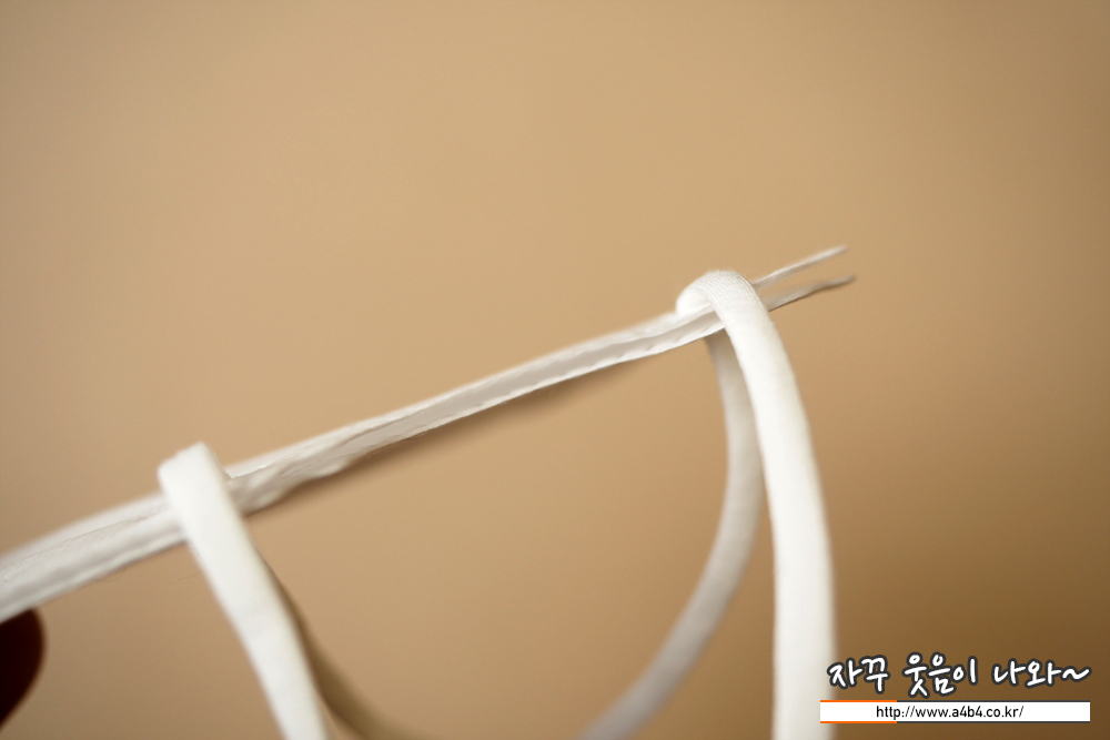 | 납작한 칼국수끈이 귀걸이끈으로 사용. 강한 탄력