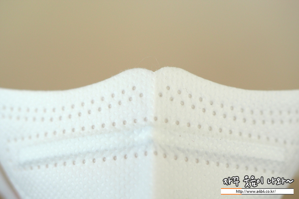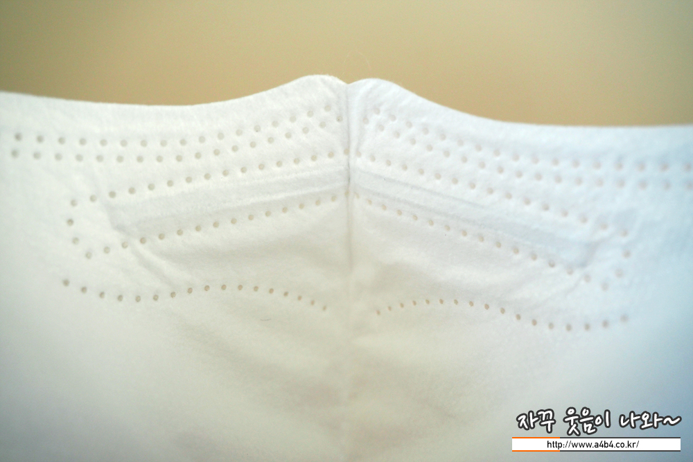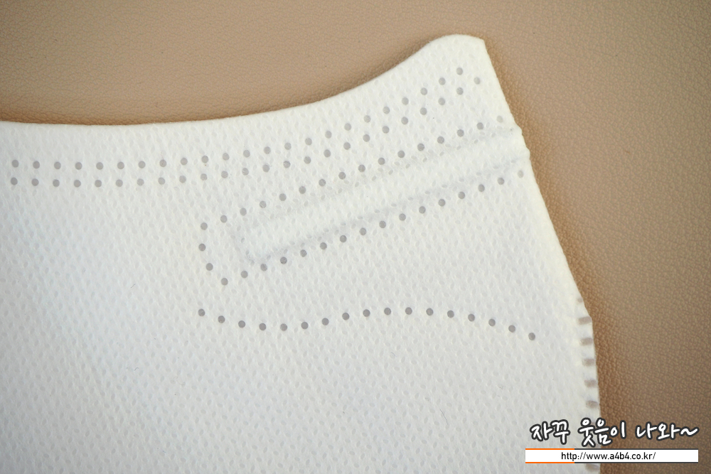 에어데이즈 마스크는 도트 처리된 매끈한 촉감의 겉감이 적용되었습니다. 조금 얇은 스타일로 착용감 또한 소프트합니다. 얇고 소프트한 관계로 탄탄하고 각잡힌 착용핏을 기대하기는 어렵습니다.