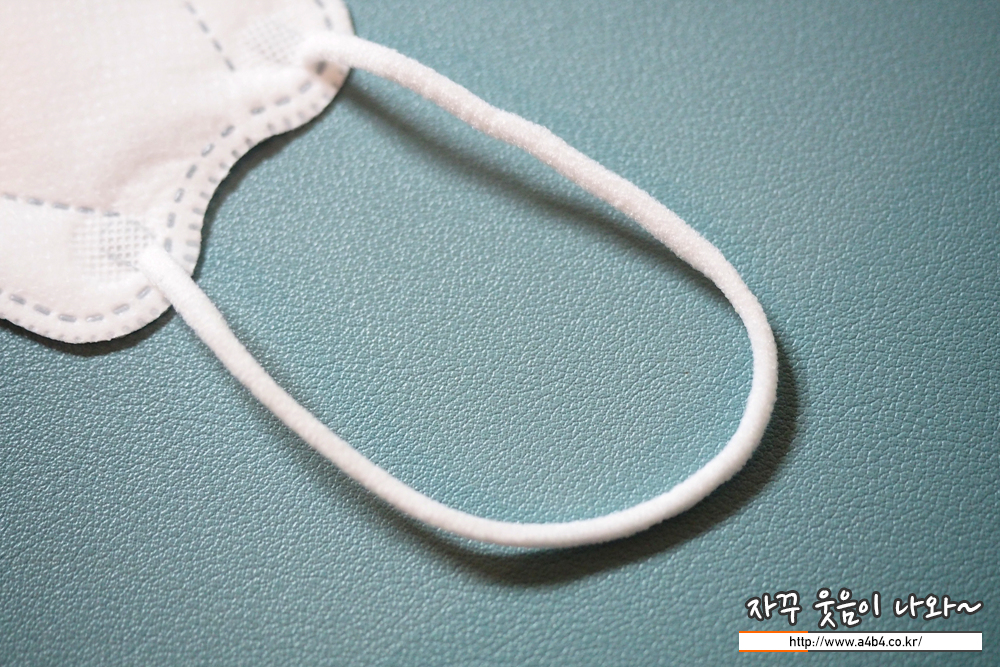 둥근 모양의 귀걸이끈은 마스크 앞면에 접착되어 있으며, 수피아엔사나래 마스크 귀걸이끈 탄력을 보통수준입니다.