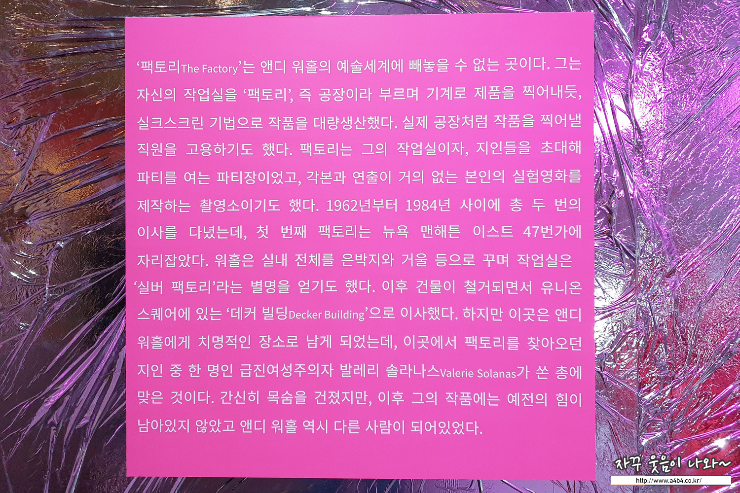 실버 팩토리의 벽면을 액자에 담아 팔기도 했고, 이곳에서 유명인들과 찐한 파티가 열린 곳이라고 하죠