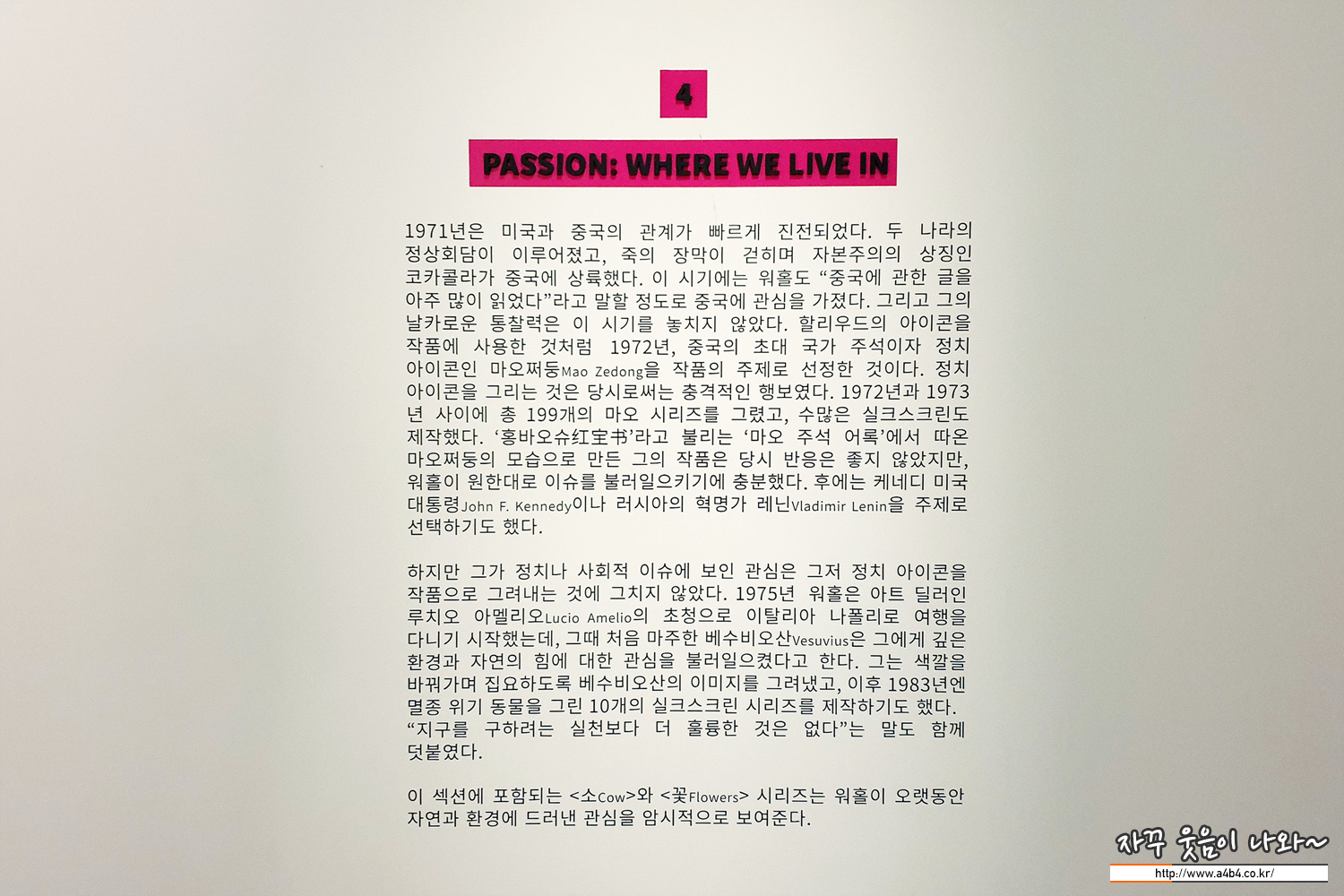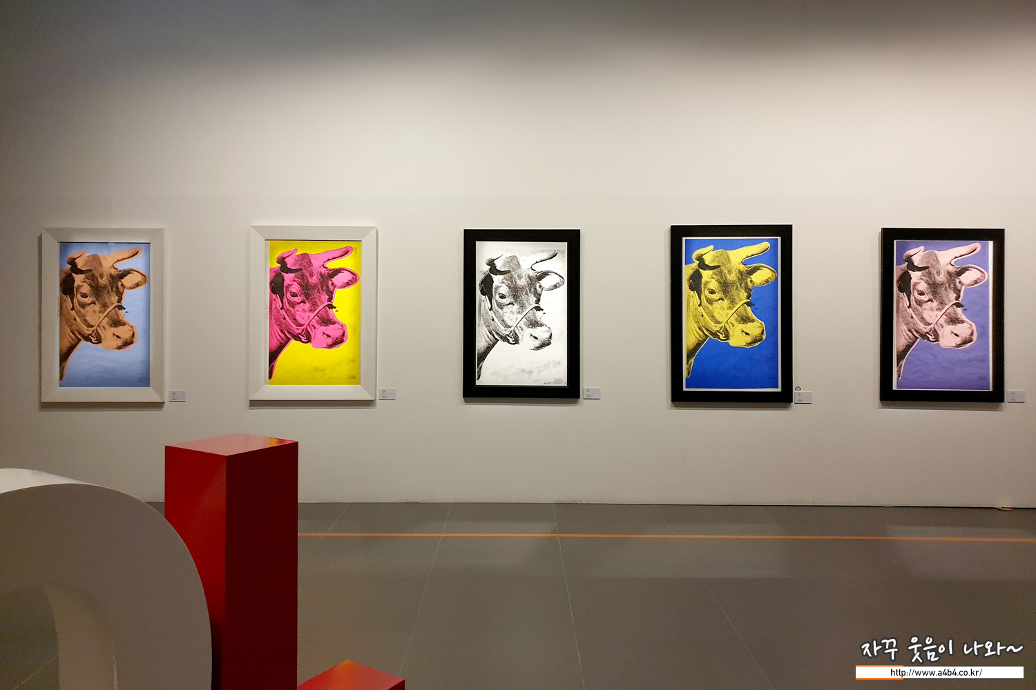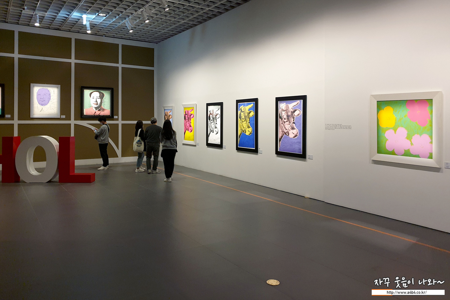 워홀의 대표적인 아이콘 중 하나인 꽃과 소 작품들...