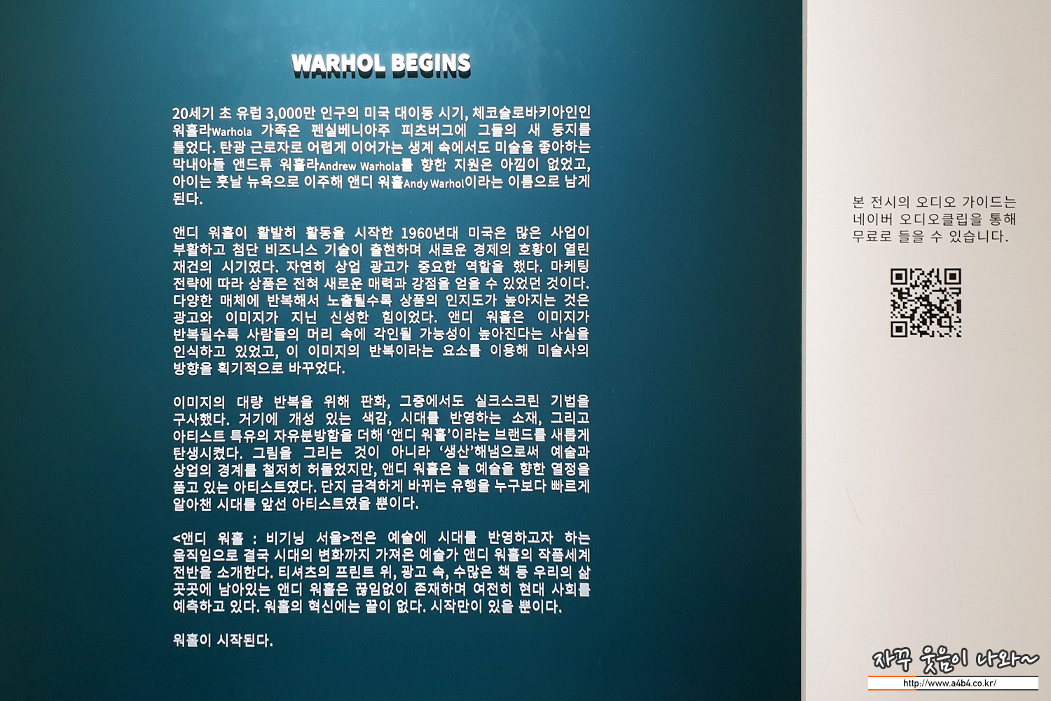 이것으로 더서울현대에서 열리고 있는 앤디워홀 비기닝 서울 전시회가 마무리 됩니다.