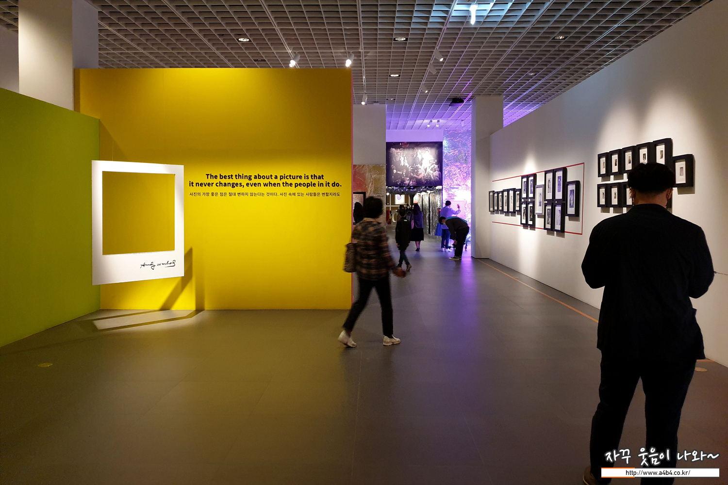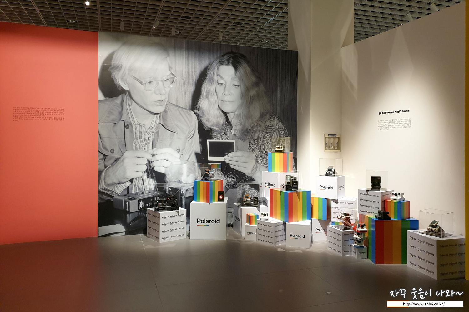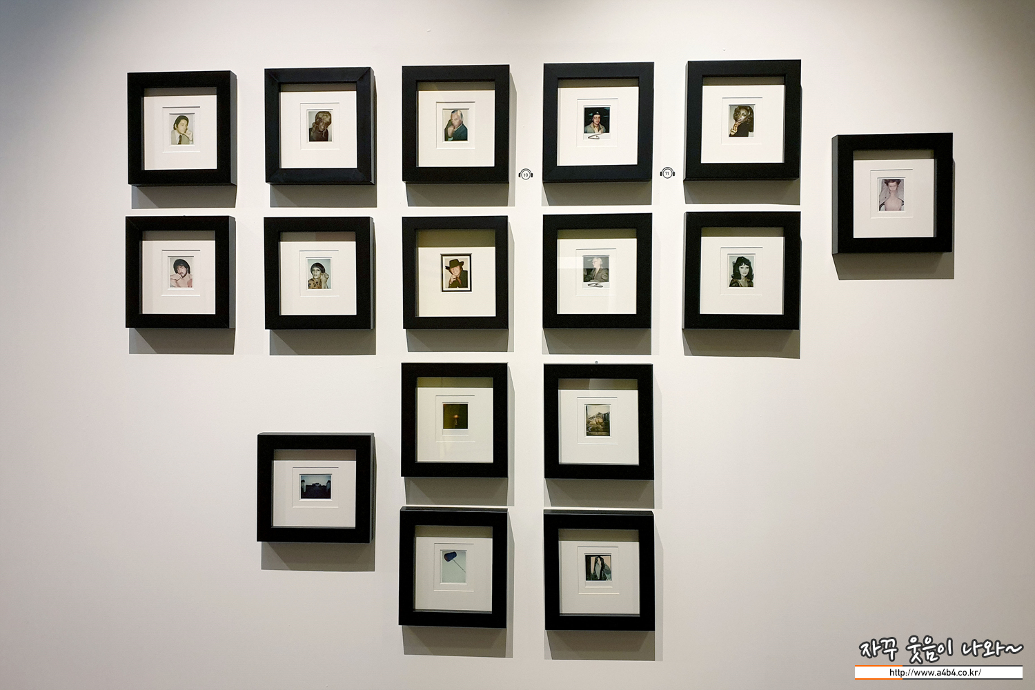 본인은 물론 유명인들의 폴라로이드 사진들이 전시된 공간...