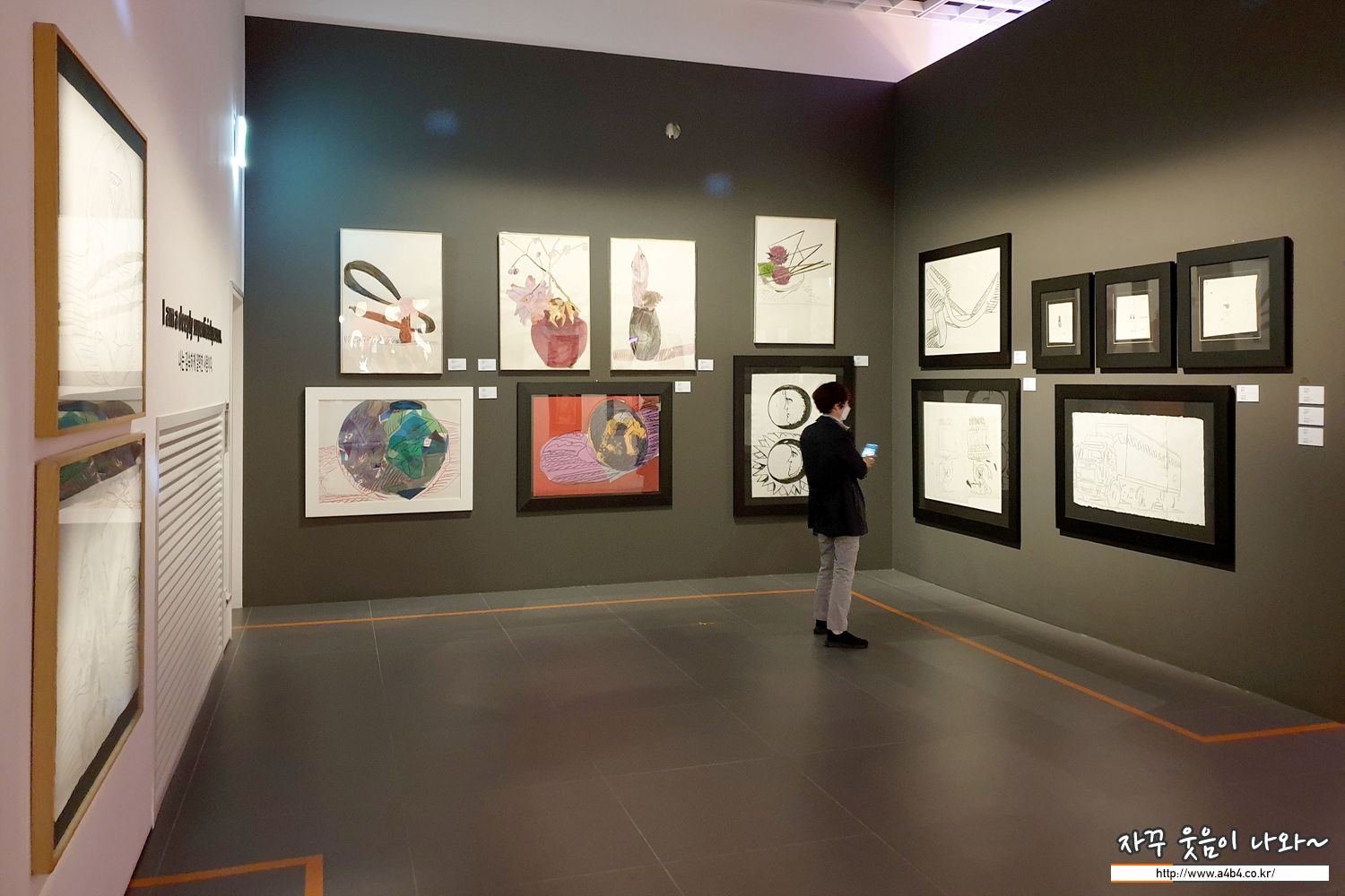 대표적인 실크 스크린이 아닌 드로일 작품들과 다른 작품들이 전시된 공간입니다.