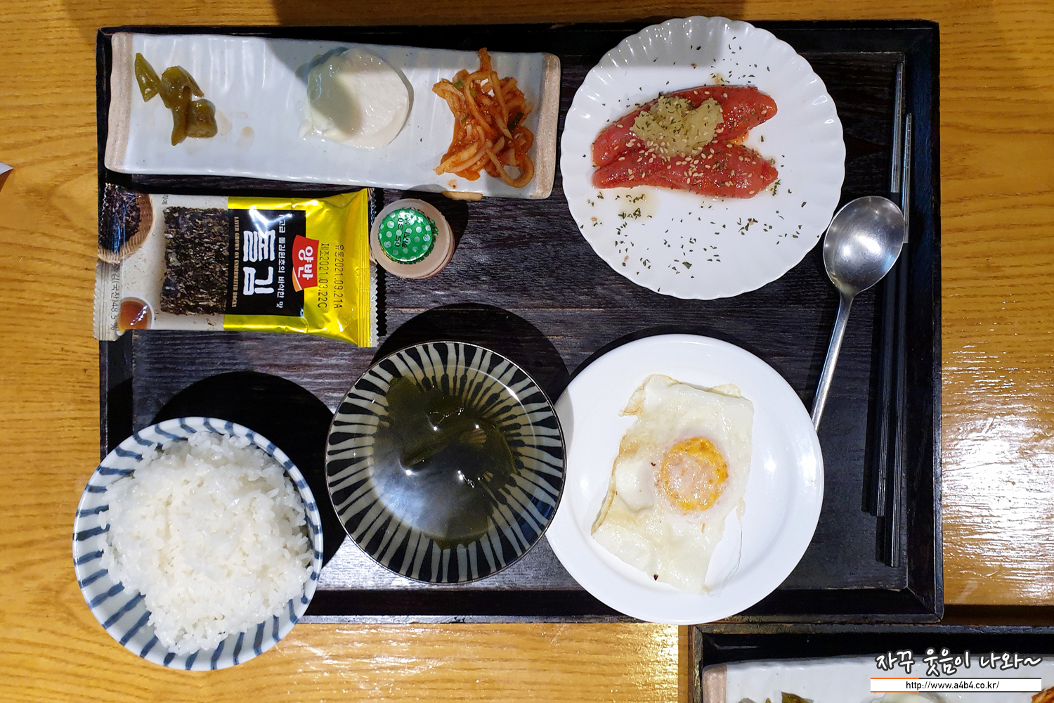 계란 후라이와 김 등... 반찬은 무료로 리필이 가능합니다.