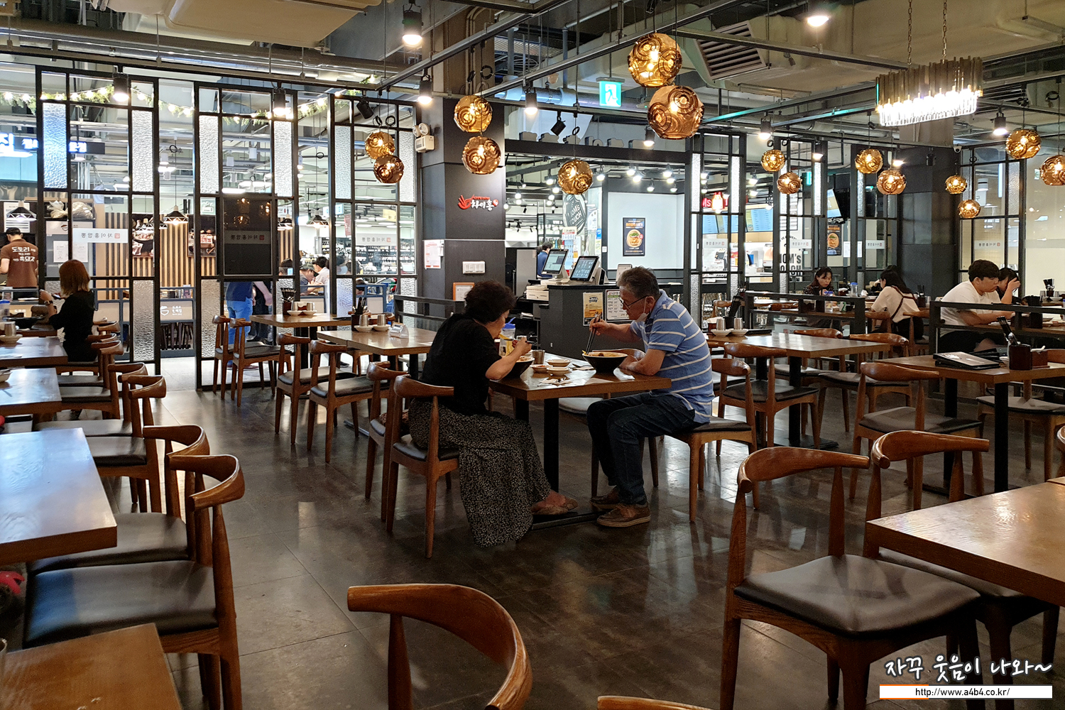 P1 층에는 메가마켓, 하이마트 등이 위치해 있으며 와인샵 옆에 식당가가 위치해 있습니다. 이곳에 차이홍 중국집도 같이 있다는... 초밥, 돈까스, 햄버거, 분식 등 기본적인 식당은 모두 입점해 있습니다.