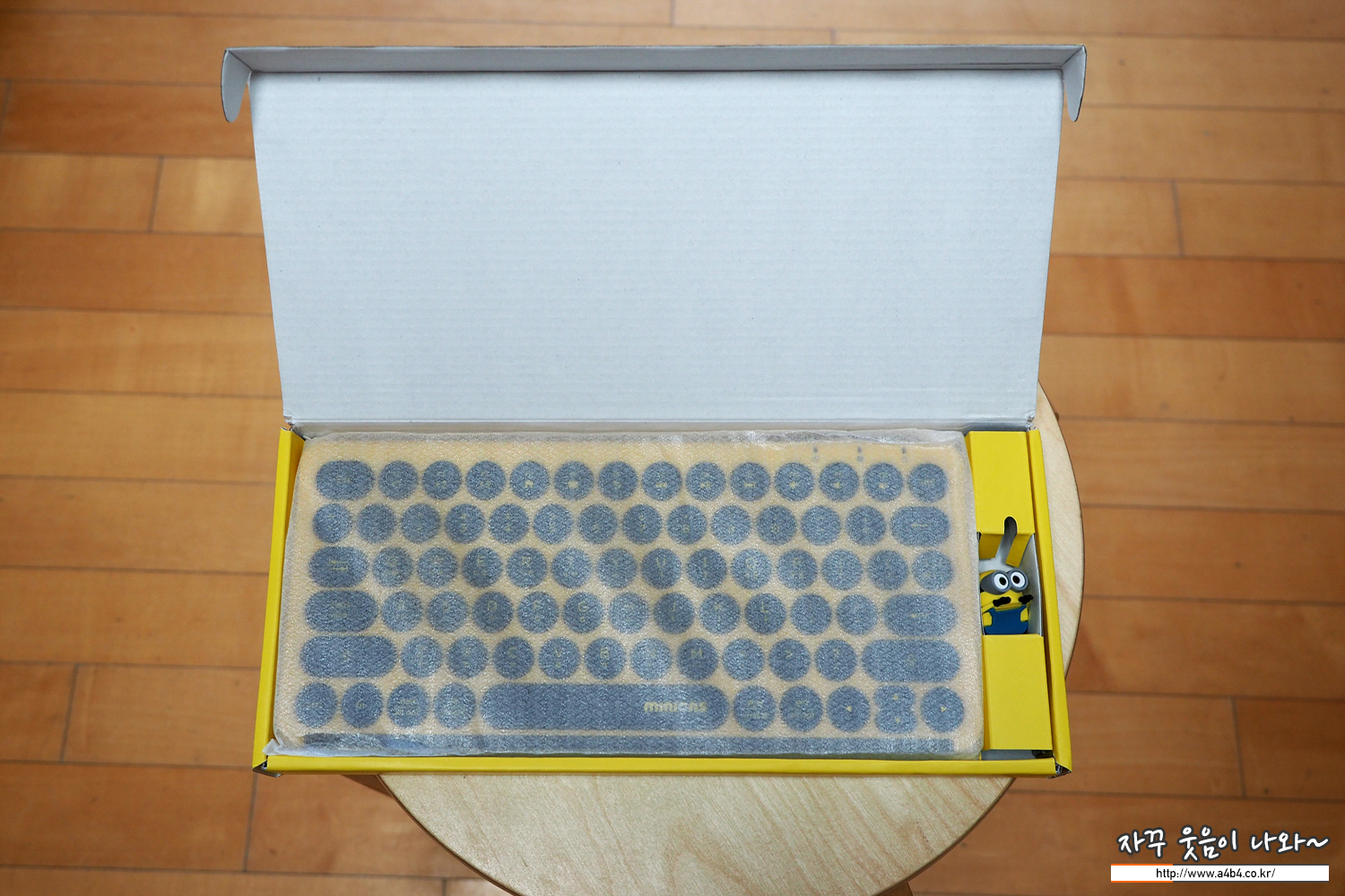 박스 안쪽에는 키보드와 미니언즈 피규어 한 개가 들어 있습니다. 밥 밥 밥... 미니언즈 4총사가 있었으면 더 좋았을...