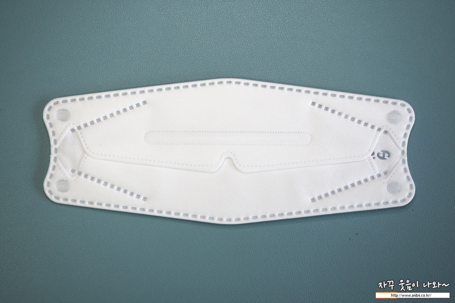 퓨어브레스 황사방역용마스크 디자인은 삼단접이식 3D타입 마스크 모양을 보입니다. 조금 진한 접착선을 제외하고는 일반적인 3D 스타일 디자인을 보입니다.