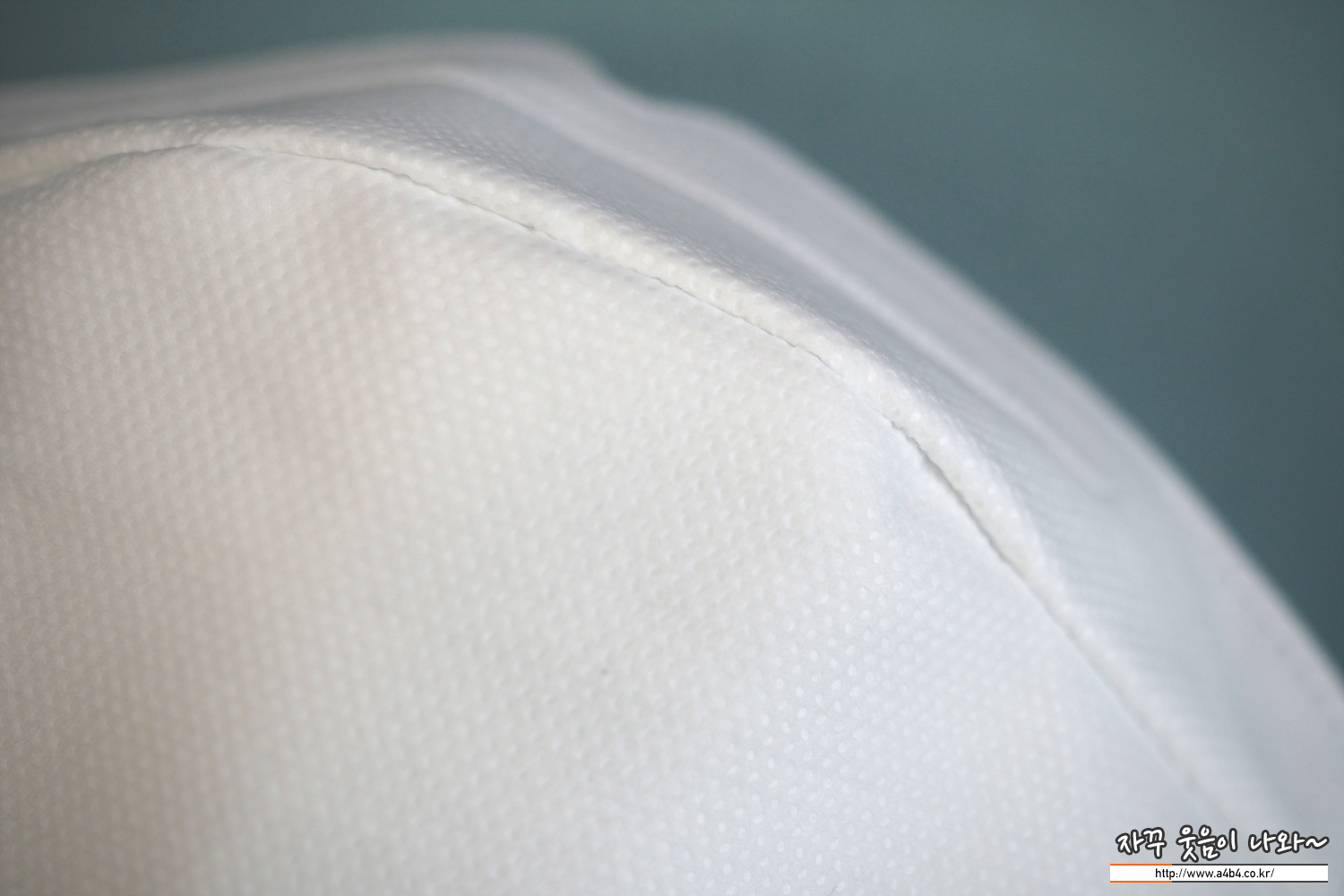 신일제약 퓨어브레스 황사방역마스크는 약한 패턴처리가 된 매끄러운 감촉의 부직포가 겉감으로 사용되었습니다. 삼중 구조로 두께가 약간 있는 타입의 마스크입니다. 소프트와 하드 중간 타입의 착용감을 보여주고 있습니다.
