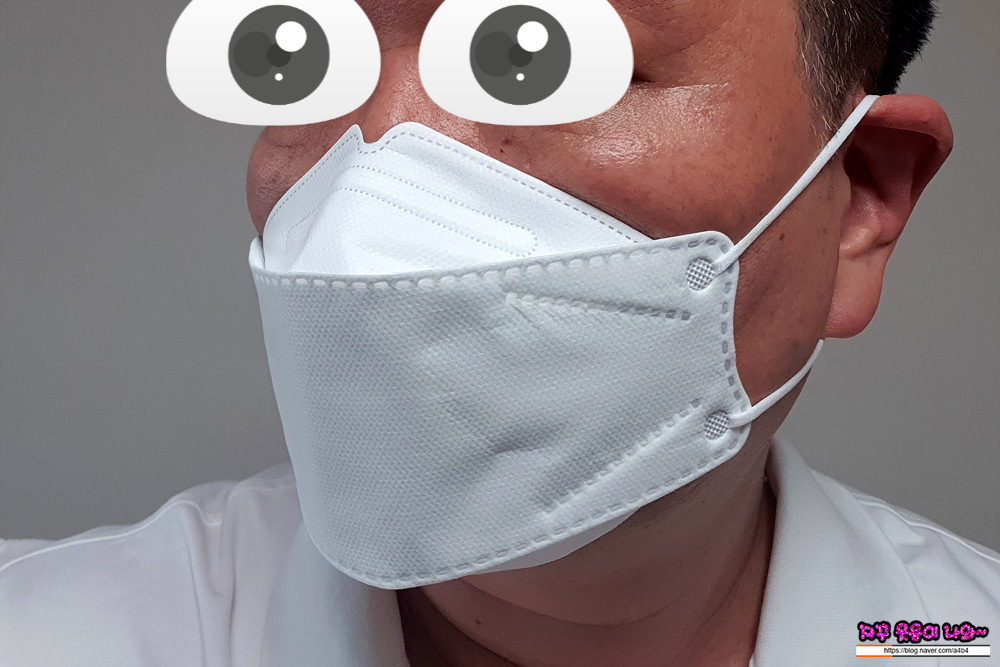 오늘 리뷰한 KF94 퓨어브레스마스크는 일반적인 대형 마스크로 무난한 착용감과 착용핏을 보입니다. 피부트러블은 없으며, 장시간 착용해도 마스크가 무너지지 않고 안정적인 모양을 보입니다.
